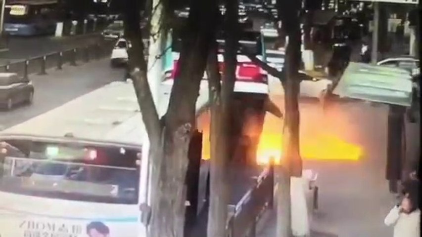 వీడియో వైరల్: చైనాలో వింత ఘటన... చూస్తుండగానే భూమిలోకి కూరుకుపోయిన బస్సు