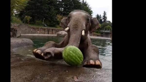 అమెరికాలో రకరకాల ఈవ్స్ జరుగుతుంటాయి. అందులో నేషనల్ వాటర్ మిలన్స్ డే కూడా ఒకటి. అవును ఆ సందర్భంగా వాటర్ మిలన్ తినే వీడియోలను షేర్ చేశారు. అందులో ఏనుగు పుచ్చకాయ తీసుకునేది కనిపించింది. అదీ మెల్లిగా తన వద్దకు తీసుకొని.. తినే విజువల్ కనిపించింది. ఆ తర్వాత అదే వీడియోలో ఓ శునకం కూడా తినే క్లిప్ ఉంది. చివరికీ ఓ తాబేలు కూడా చక్కగా పుచ్చకాయను తింటుంది.