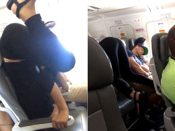 ఎయిర్ హోస్టెస్ అటు వెళ్లిన తరువాత మళ్లీ ఆమె తన చేష్టలు మొదలు పెట్టింది. అదే విమానంలో ప్రయాణిస్తున్న రీడ్ మొబ్రెస్ అనే ఆయన ఆమె వేస్తున్న శీర్షాసనం మొబైల్ లో రికార్డు చేసి ట్వీట్టర్ లో పెట్టారు.