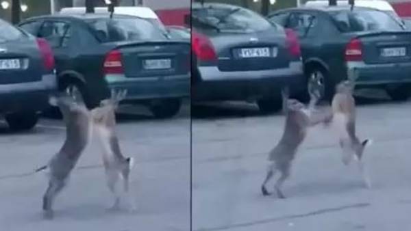 స్ట్రీట్ ఫైట్.. ఇదీ మనుషులే కాదు జంతువులు.. పెంపుడు జంతువుల మధ్య కూడా జరుగుతుంటాయి. ఇటీవల ఓ రెండు కుందేళ్లు నడి రోడ్డు మీద గొడవ పడ్డాయి. దానికి సంబంధించిన వీడియోను ఒకరు తీసి.. సోషల్ మీడియాలో షేర్చేశారు. ఇంకేముంది ఆ వీడియో తెగ ట్రోల్ అవుతుంది. చాలా మంది కామెంట్స్ చేశారు. ఆ వీడియోను మీరు కూడా చూడండి.