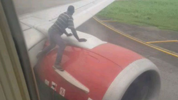 జులై 19న నైజీరియా ఐకెజాలోని ముర్తలా ముహమ్మద్ ఎయిర్పోర్ట్లో అజ్మన్ ఎయిర్ ఫ్లైట్ టేకాఫ్కు సిద్ధమైంది. ఇంతలో రన్ వే పక్కనే ఉన్న పొదల నుంచి ఓ వ్యక్తి అకస్మాత్తుగా విమానం వైపు పరిగెత్తుకుంటూ వచ్చాడు. అది గమనించిన పైలెట్ విమాన ఇంజన్ నిలిపివేశాడు. ఇంతలో విమానం పైకి ఎక్కిన ఆ దుండగుడు వెంట తెచ్చుకున్న బ్యాగ్ను ఫ్లైట్ ఇంజన్ పైన పెట్టి విమానం రెక్కపైకి ఎక్కి నిలబడ్డాడు. అది గమనించిన విమాన సిబ్బందితో పాటు ప్యాసింజర్లు షాక్కు గురయ్యారు. ఏం జరుగుతుందోనని భయంతో వణికిపోయారు.