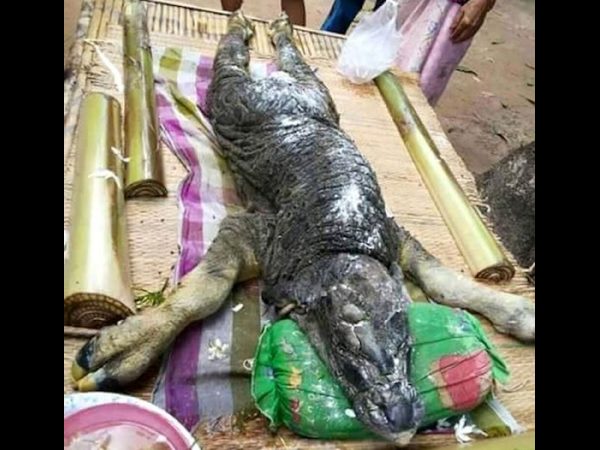 థాయిలాండ్లోని ఓ గ్రామంలో గేదెకు ఓ వింత ఆకారంలో ఉన్న రూపం పుట్టింది. చూసేందుకు నల్లని ఆకారంతో కాళ్ళు గేదె రూపంలో ఉన్నా, శరీరం మాత్రం పొలుసులుదేరి మొసలిని తలపించడంతో అంతా ఆ వింతను చూసి విస్తుపోతున్నారు.