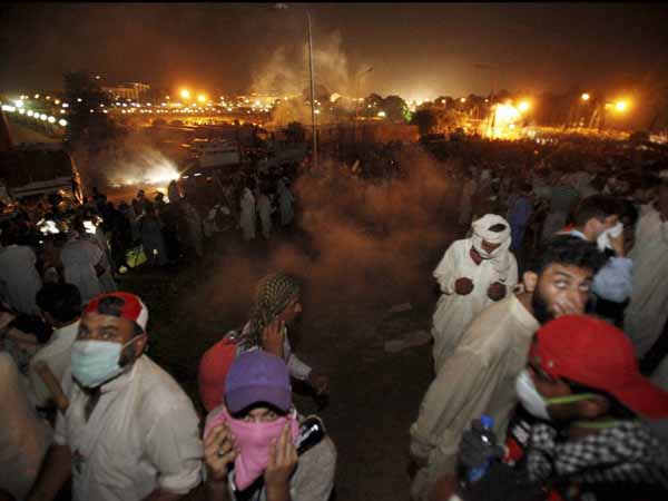విపక్షాల నిరసనలు శనివారం రాత్రి హింసాత్మకంగా మారాయి. మాజీ క్రికెటర్ పాకిస్థాన్ తెహ్రీకె ఇన్సాఫ్(పీటీఐ) నేత ఇమ్రాన్ ఖాన్, కెనడాకు చెందిన మత పెద్ద, పాకిస్దాన్ అవామీ తెహ్రీక్ (పీఏటీ) ఛీప్ తహిరుల్ ఖాద్రీ నాయకత్వంలో మద్దతుదారులు కర్రలు చేతబూని ఇస్లామబాద్లోని ప్రధాని నవాజ్ షరిఫ్ ఇంటిని ముట్టడించేందుకు ప్రయత్నించగా పోలీసులు వారిని చెదరగొట్టేందుకు బాష్పవాయువు, రబ్బర్ బుల్లెట్లను ప్రయోగించారు. ఈ క్రమంలో ముగ్గురు మరణించారు. 450 మంది గాయపడ్డారు.