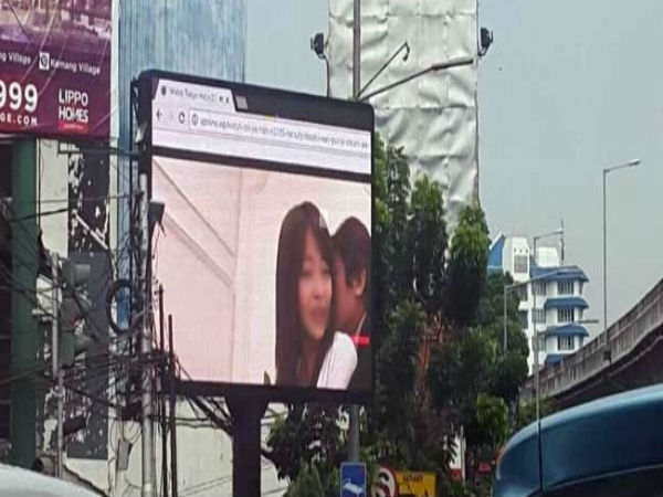 షాక్: రద్దీగా ట్రాఫిక్లో బోర్డుపై పోర్న్ చిత్రం ప్లే చేశారు