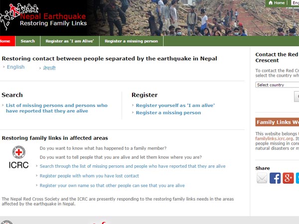 నేపాల్ భూకంపంలో తప్పిపోయిన వారి కోసం ప్రత్యేక వెబ్సైట్