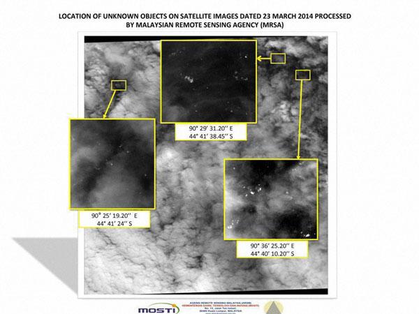 ఫ్రాన్స్ నుంచి గత ఆదివారం (23న) అందిన ఉపగ్రహ చిత్రాలను విశ్లేషించిన మలేసియన్ రిమోట్ సెన్సింగ్ ఏజెన్సీ (ఎంఆర్ఎస్ఏ).. పెర్త్ (ఆస్ట్రేలియా) తీరం నుంచి 2557 కిలోమీటర్ల దూరంలో దక్షిణ హిందూ మహా సముద్రంలోని ఒక ప్రాంతంలో 400 చదరపు కిలోమీటర్ల పరిధిలో తేలుతున్న 122 వస్తువులను గమనించినట్టు మలేసియా మంత్రి హిషముద్దీన్ వెల్లడించారు.