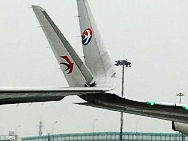 షాంఘై: రెండు విమానాలు ఒక దానికి మరొకటి తగిలితే ఎలా ఉంటుందో ఊహించుకుంటే భయం వేస్తుంది. ఇలాంటి సంఘటన షాంఘైలోని హంకియో అంతర్జాతీయ విమానాశ్రయం వద్ద చోటు చేసుకుంది. రెండు విమానాలు కొంత మేర తగిలాయి.