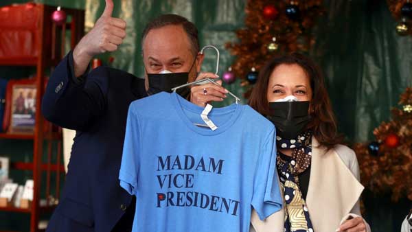రాజధాని వాషింగ్టన్ వీధుల్లో తన భర్త డౌగ్ ఎంహాఫ్తో కలిసి కలియ తిరిగారు. అవుట్ డోర్ హాలిడే మార్కెట్లో దుస్తులను కొనుగోలు చేశారు. టీషర్టులను కొన్నారు. ఆ టీషర్టులపై Madam Vice President అనే అక్షరాలు ముద్రించి ఉన్నాయి. వాషింగ్టన్లోని గ్యాలరీ ప్లేస్ వద్ద ఉన్న ఈ హాలిడే మార్కెట్లో సుమారు 25 నిమిషాల పాటు హాలిడే మార్కెట్లో గడిపారు. కొన్ని పజిల్స్, ఛీస్, టీ పౌడర్ను కమలా హ్యారిస్ దంపతులు కొనుగోలు చేసినట్లు డబ్ల్యూటీఓపీ న్యూస్ స్టేషన్ను ఉటంకిస్తూ న్యూయార్క్ పోస్ట్ ఓ కథనాన్ని ప్రచురించింది.
