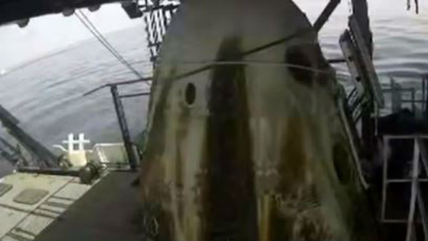 వాటర్ ల్యాండింగ్: చరిత్ర సృష్టించిన నాసా: భూమిపై వ్యోమగాములు: స్పేస్ఎక్స్ క్యాప్సుల్