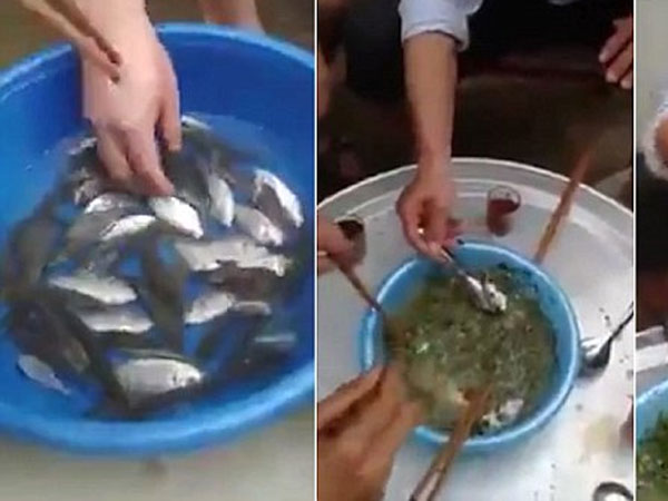 చైనా: బతికున్న చేపలను నమిలి మింగేశారు