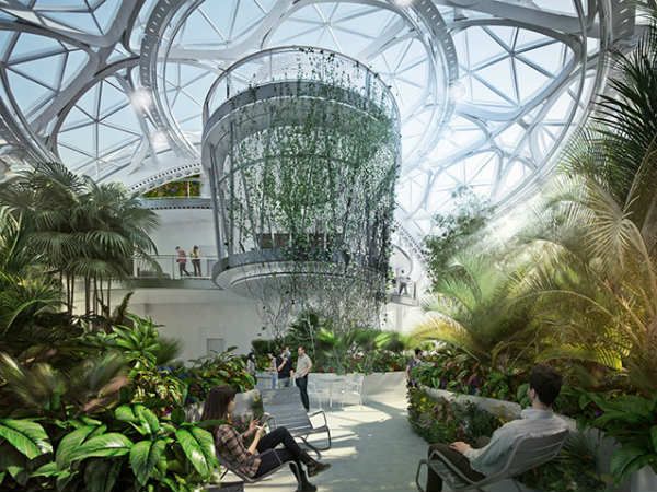 ఆఫీసంటే టేబుళ్లు.. కుర్చీలు.. కంప్యూటర్లు.. ఏసీలు.. ఇవేనా? కాదు - ఉద్యోగులు తమ పనిలో అలసటను మర్చిపోవాలి.. కళ్ల ఎదురుగా కనిపించే వాతావరణం వినూత్నంగా ఆలోచించగలిగేలా ఉద్యోగులను ప్రేరేపించాలి. సరిగ్గా ఇలాగే ఆలోచించిన అమెజాన్ తన డౌన్టౌన్ ఆఫీసులో ఉద్యోగులకు ప్రకృతిని ఆస్వాదిస్తూ పనిచేసేలా తన కార్యాలయాన్ని రూపుదిద్ది ఉద్యోగులకు సరికొత్త అనుభూతిని అందిస్తోంది.