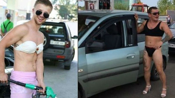 ఇక పెట్రోలు ఫ్రీగా ఇస్తున్న ఆ బంకు యాజమాన్యం పెట్టిన కండీషన్ ఏంటంటే ఎవరికైనా సరే అది ఆడవారైనా మగవారైనా తమ బంకు నుంచి ఉచితంగా పెట్రోలు కావాలంటే బికినీ ధరించి పెట్రోల్ బంకులోకి రావాలని కండీషన్ పెట్టింది. ఆ.. పోయేదేముంది రెండు నిమిషాలు బికినీ ధరించి పెట్రోల్ బంకుకు వెళితే ఫుల్ ట్యాంకు పెట్రోల్ పట్టుకోవచ్చని భావించిన మగవారు వారి దగ్గర బికీనీలు లేకున్నప్పటికీ వారింట్లో ఉన్న ఆడవాళ్ల బికినీలు ధరించి ఓల్వీ పెట్రోల్ బంకు ముందు క్యూ కట్టారు. మరి కొంతమంది మగవారైతే కలర్ఫుల్ బికినీలు, హైహీల్స్ ధరించి పెట్రోల్ కోసం ఓల్వీ పెట్రోల్ బంకుదగ్గరకు చేరారు.