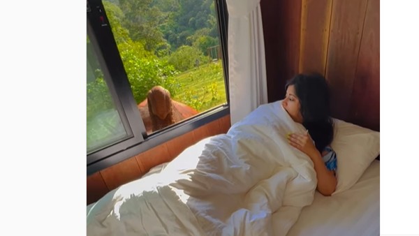 థాయ్లాండ్లో గల చియాంగ్ మై రిసార్ట్లో ఓ మహిళ పడుకుని ఉంది. అయితే పక్కనే ఓ కిటికీ ఉంది. చల్లగా గాలి వీస్తూ ఉంటుంది. కానీ అంతలోనే కిటికీ నుంచి ఓ గజరాజు వచ్చాడు. తొండం తీసి.. ఊపి వేశాడు. మెల్లగా ఆమెను లేపే ప్రయత్నం చేశాడు. తనను ఎవరో లేపుతున్నారని గ్రహించింది. లేచి చూసింది. ఆ ఏనుగును చూసి అలానే ఉంది. వీడియోను కంటెంట్ క్రియేటర్ సాక్షి జైన్ పోస్ట్ చేశారు. దానికి ఆమె రిసెప్షనిస్ట్ బదులు ఎలిఫెంట్ వేకప్ కాల్ ఇస్తోందని రాశారు.