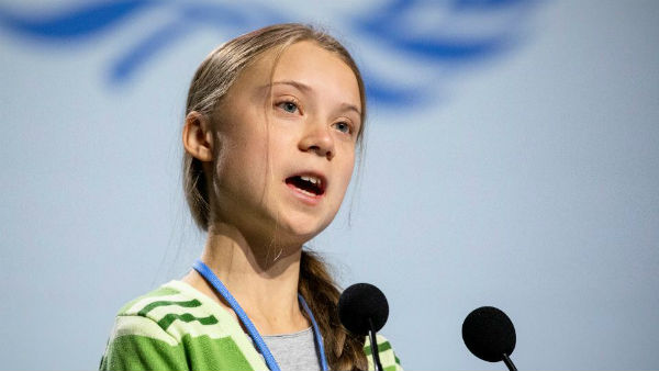 స్వీడన్కు చెందిన ఈ టీనేజీ అమ్మాయి ఒక్కసారిగా ప్రపంచ దృష్టిని ఆకట్టుకుంది. వాతావరణం, పర్యావరణ పరిరక్షణకై ఉద్యమిస్తోంది. తను ఈ సమయంలో ఎంతో చక్కగా స్కూళ్లో ఉండాల్సిన దాన్నని తన వయసుకు ఈ సమావేశంకు రాకూడదని చెప్పారు. కానీ పాలకులు చేస్తున్న తప్పులకు పర్యావరణం దెబ్బతిని తమలాంటి యువత భవిష్యత్తును అంధకారంలోకి నెట్టేస్తున్నారని అందుకే దీనిపై ప్రశ్నించేందుకు తాను వచ్చానని గ్రేటా థన్బర్గ్ చెబుతూ భావోద్వేగానికి గురైంది.