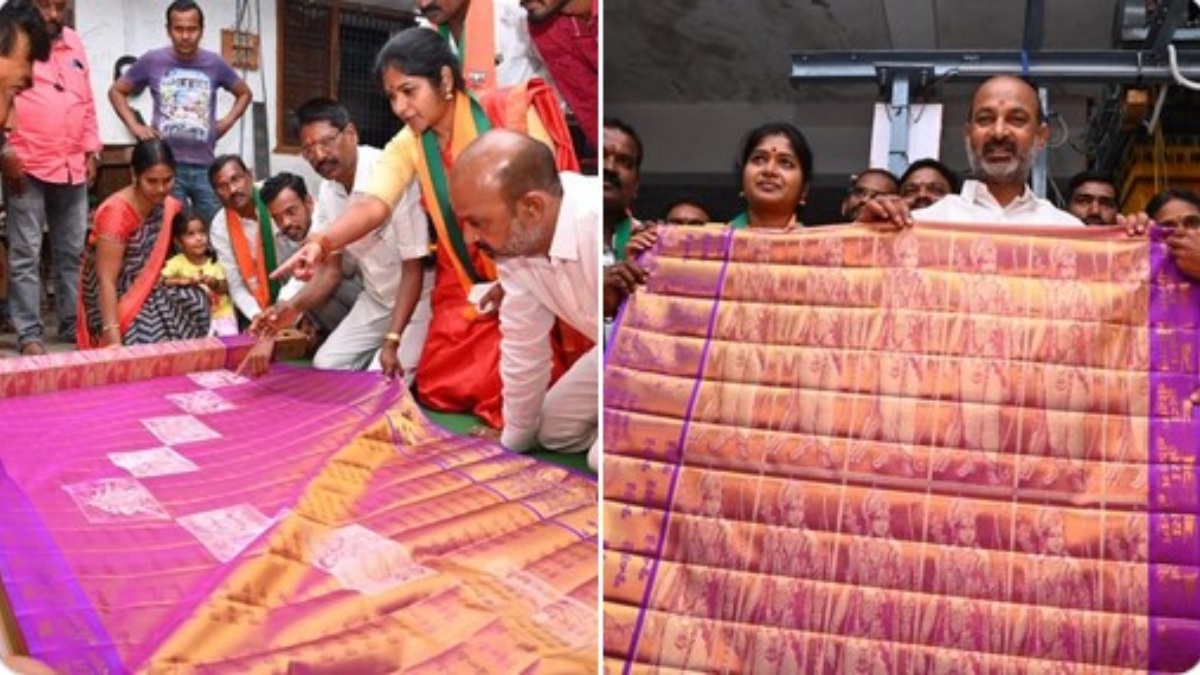 బీజేపీ జాతీయ ప్రధాన కార్యదర్శి, కరీంనగర్ ఎంపీ బండి సంజయ్ గురువారం సాయంత్రం సిరిసిల్లలోని హరిప్రసాద్ నివాసానికి వెళ్లారు. ఈ సందర్భంగా హరిప్రసాద్ తయారు చేసిన బంగారు చీరను పరిశీలించారు. శ్రీరాముడి చిత్రంతోపాటు రామాయణ ఈతివృత్తాన్ని తెలియజేసే చిత్రాలను కూడా ఆ చీరలో పొందుపర్చడం విశేషం.