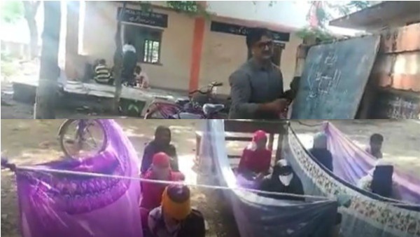 ఆరుబయట క్లాసులు.. చీరల మధ్య పాఠాలు: లెక్కల మాస్టారు ఐడియా: కర్నూలు జిల్లాలో కరోనా పీడ