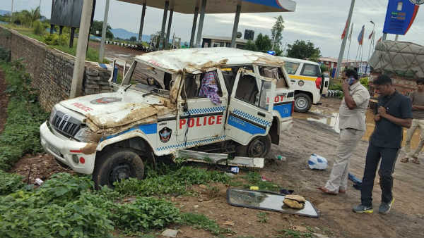 కర్నూలు: శాసన మండలి విప్ గంగుల ప్రభాకర్ రెడ్డి కాన్వాయ్ లోని పోలీస్ ఎస్కార్ట్ వాహనం ప్రమాదానికి గురైంది. మంగళవారం ఉదయం ఆళ్లగడ్డ సమీపంలో కర్నూలు-కడప జాతీయ రహదారిపై బోల్తా పడింది. టైరు పేలడం వల్లే ఈ ప్రమదం చోటు చేసుకున్నట్లు పోలీసులు ప్రాథమికంగా నిర్ధారించారు. ఈ ఘటనలో ఎస్కార్ట్ వాహనంలో ప్రయాణిస్తోన్న ఆర్మ్డ్ రిజర్వుడ్ పోలీస్ ఎస్ఐ సహా ముగ్గురు పోలీస్ కానిస్టేబుళ్లు గాయపడ్డారు. వారిలో ఒకరి పరిస్థితి విషమంగా ఉన్నట్లు తెలుస్తోంది. వారిని చికిత్స నిమిత్తం కర్నూలులోని ప్రభుత్వ జిల్లా ఆసుపత్రికి తరలించారు.