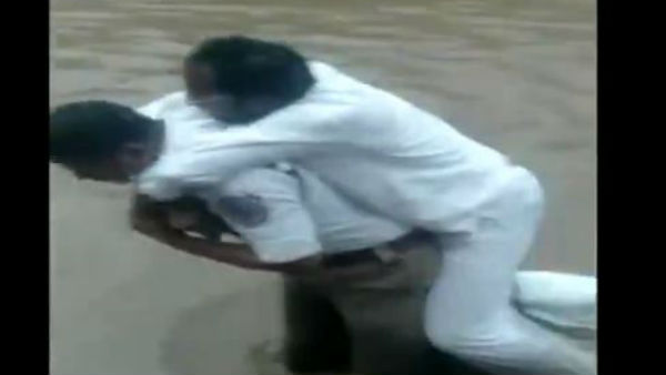 సెల్యూట్ సార్: వికలాంగుడిని భుజాలపై ఎత్తుకుని వరదను దాటించారు(వీడియో)