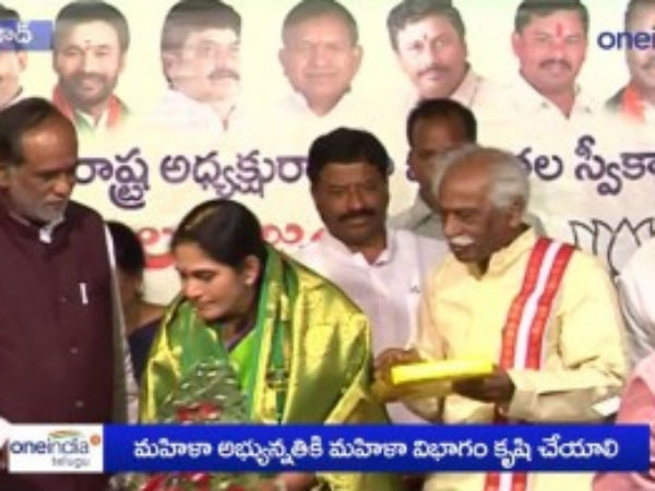 తెలంగాణ రాష్ట్రంలో మహిళా అభ్యున్నతికి బీజేపీ మహిళా విభాగం కృషి చేయాలని కేంద్రమంత్రి దత్తాత్రేయ బుధవారం నాడు సూచించారు. తెలంగాణ బీజేపీ మహిళా మోర్చా అధ్యక్షురాలిగా ఆకుల విజయ బాధ్యతలు స్వీకరించారు. ఈ కార