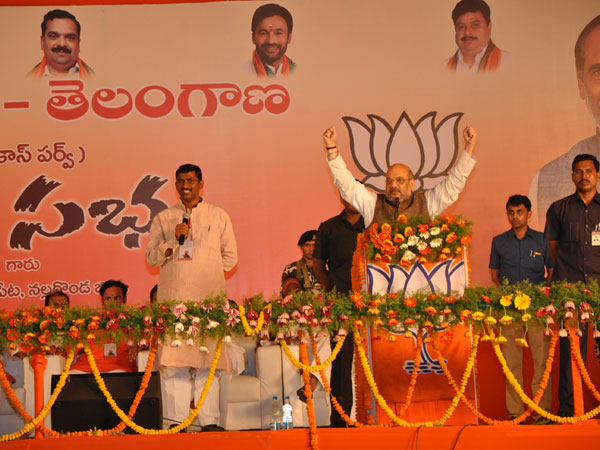 బీజేపీతోనే అభివృద్ధి తెలంగాణ సాధ్యమని తెలిపారు. తెలంగాణ రాష్ట్రం దేశంలోనే నెంబర్వన్ కావాలని ఆశిస్తున్నానని, తెలంగాణ సమగ్రాభివృద్ధి నరేంద్రమోదీ నాయకత్వంలోని కేంద్ర ప్రభుత్వంతో తప్ప మరెవ్వరితోనూ సాధ్యం కాదని స్పష్టం చేశారు. గత రెండేళ్లలో ప్రజా సమస్యల పరిష్కారంలో మోడీ ప్రభుత్వం పూర్తిగా విజయవంతమైందని అమిత్ షా చెప్పారు.