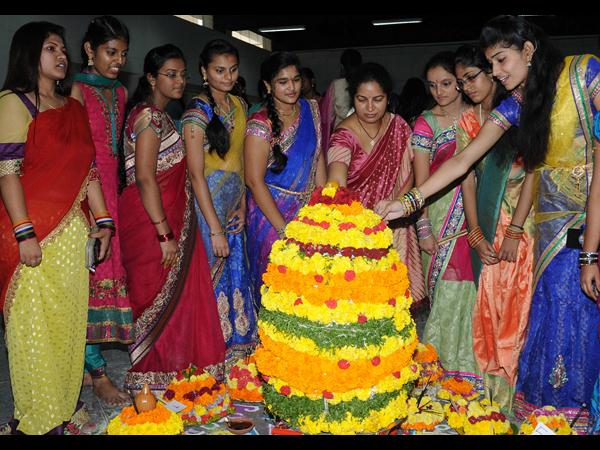 హైదరాబాదులోని భద్రుకా కాలేజీ విద్యార్థినులు బతుకమ్మను పేర్చి, మధ్యలో ఉంచి, చుట్టూ తిరుగుతూ బతుకమ్మ ఆడారు.