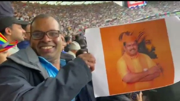 పాకిస్థాన్ తో మ్యాచ్..అందునా ప్రపంచ కప్. దీపావళి పర్వదినం. క్రికెట్ కిక్కు ఎలా ఉంటుందో మరోసారి కోట్లాది మంది ఆస్వాదించారు. ఇది కదా క్రికెట్ అంటే అనే రీతిలో చివరి నిమిషం వరకు అభిమానులను మ్యాచ్ వద్దే కట్టిపడేసారు. మెల్ బోర్న్ స్టేడియం లో 90 వేల మందికి పైగా ప్రత్యక్షంగా మ్యాచ్ తిలకించారు. అందులో హైదరాబాద్ కు చెందిన వారు ఉన్నారు. వారు అంతర్జాతీయ మ్యాచ్..అందునా పాకిస్థాన్ తో మ్యాచ్ కావటంతో తమ అభిమాన ఎమ్మెల్యే ఫొటో ప్రదర్శించి తమ వైపు ఫోకస్ పడేలా చూసారు. గోషామహల్ ఎమ్మెల్యే రాజాసింగ్ ఫొటోను విరాట్ కోహ్లీ బ్యాటింగ్ కొనసాగుతున్న వేళ ప్రదర్శించారు. ఇప్పుడు ఈ వీడియో సోషల్ మీడియాలో వైరల్ అవుతోంది.