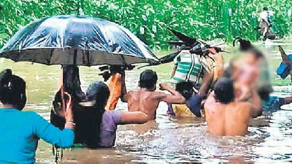చనిపోయిన మహిళ చివరిచూపు కోసం... వాగుదాటి ప్రాణాలకు తెగించి సాహసం చేసిన చత్తీస్గఢ్ గిరిజనులు
