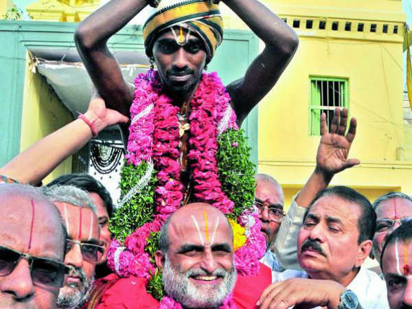 2700ఏళ్లనాటి ఆచారం: అర్చకుడి భుజ స్కందాలపై దళితుడి ఆలయ ప్రవేశం