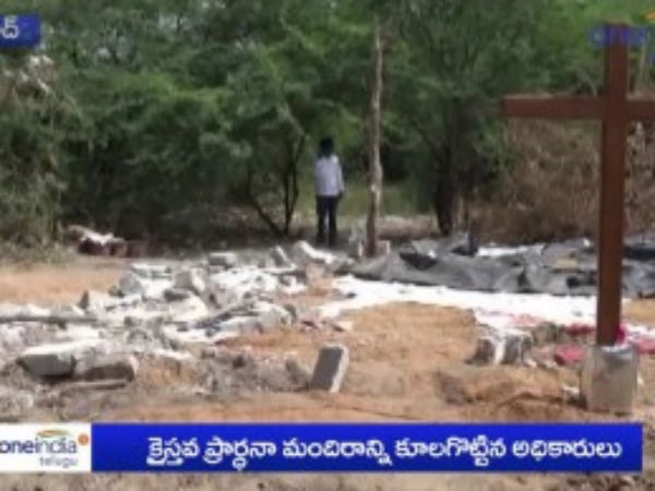 హైదరాబాద్: ప్రభుత్వ స్థలంలో అక్రమంగా నిర్మించిన క్రైస్తవ ప్రార్ధనా మందిరాన్ని ప్రభుత్వ అధికారులు కూల్చివేయడంతో క్రైస్తవ సంఘ నాయకులు ఆందోళనకు దిగారు. అబ్దుల్లాపుర్ మెట్ మండలం కమ్మగూడలో గత 10 సంవత్సరాల నుంచి ప్రార్థనలు నిర్వహించుకుంటున్న చర్చిని ప్రభుత్వ అధికారులు కూల్చివేశారు. చివరికి చర్చిలో ఉన్న శిలువను కూడా అధికారులు తీసుకెళ్లారు. ఈ సందర్భంగా స్థానికులు మీడియాతో మాట్లాడుతూ తెలంగాణ రాష్ట్రంలో క్రైస్తవులపై దాడులు పెరిగాయని, గత పది సంవత్సరాలుగా ప్రార్థనా కార్యక్రమాలు నిర్వహించుకుంటున్న చర్చిని ఎలా కూలగొడతారని వారు ప్రశ్నించారు. ప్రార్థనలు చేసుకుంటున్న మహిళలను దౌర్జన్యంగా బయటకు నెట్టి చర్చిని కూల్చివేసారన్నారు. అబ్దుల్లాపూర్ మెట్ తహసీల్దార్ తమకు క్షమాపణ చెప్పాలని, లేని పక్షంలో ఆందోళనలు ఉదృతం చేస్తామని వారు తెలిపారు. తమకు కూల్చివేసిన స్థలంలోనే నూతన చర్చిను నిర్మించాలని వారు ప్రభుత్వాన్ని డిమాండ్ చేశారు.