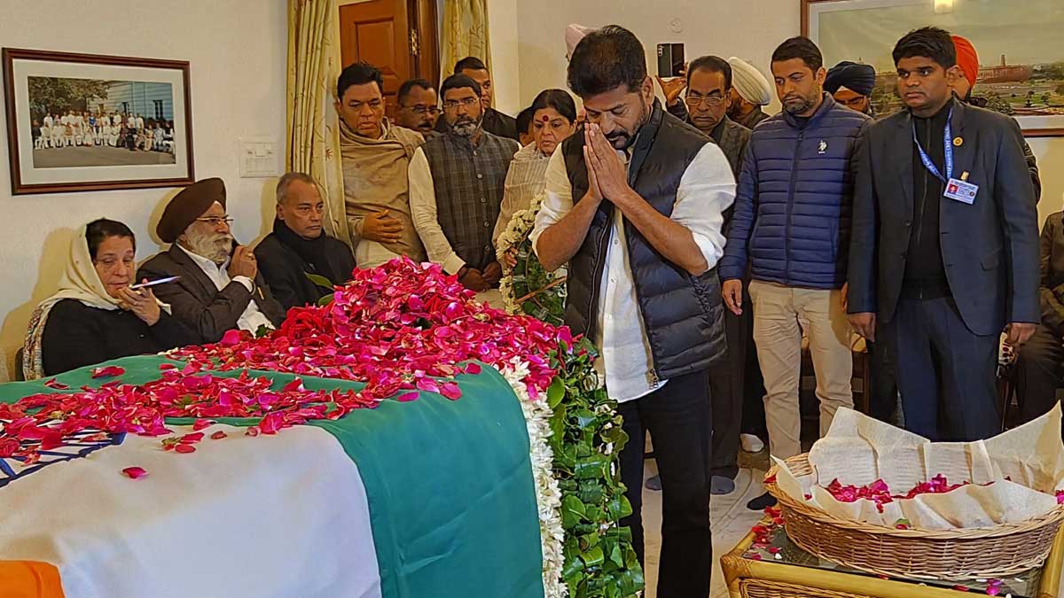 Telangana Chief Minister Shri @revanth_anumula paid his last respects to Dr. Manmohan Singh ji at his residence in New Delhi. pic.twitter.com/1yJY5kf6TS