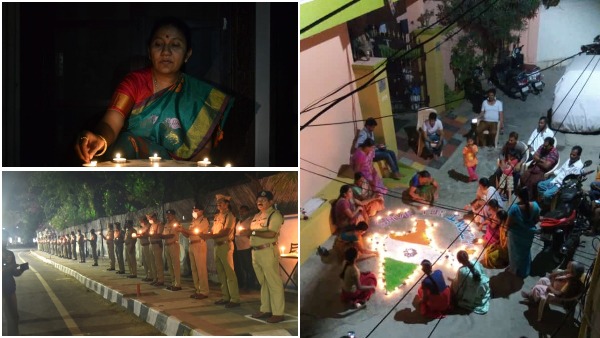 ప్రధాని నరేంద్ర మోదీ పిలుపు మేరకు విధి నిర్వహణలో ఉన్న పోలీసులు సైతం దీపాలు వెలిగించి కరోనాపై పోరాటానికి సంఘీభావం ప్రకటించారు.