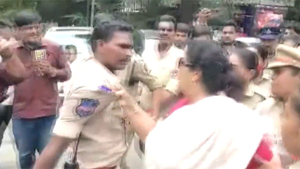 దీంతో..మరింత బలగాలను పోలీసు అధికారులు మోహరించారు. పలువురు పార్టీ నేతలను అరెస్ట్ చేసారు. ఆ క్రమంలో రాజ్ భవన్ ముట్టడికి వచ్చిన కేంద్ర మాజీ మంత్రి రేణుకా చౌదరి పోలీసుల పైన తిరగబడ్డారు. రాజ్ భవన్ వైపు వెళ్లకుండా అడ్డుకుంటున్న పోలీసుల పైన విరుచుకుపడ్డారు. దీంతో..అక్కడే ఉన్న పంజాగుట్ట స్టేషన్ ఎస్సై ఉపేంద్ర కాలర్ పట్టుకున్న రేణుకా చౌదరి ముందుకు గుంజి..వార్నింగ్ ఇచ్చారు. స్టేషన్ కు వచ్చి కొడతానంటూ ఎస్సై పైన శివాలెత్తారు. తనను అడ్డుకోవటానికి వచ్చిన మహిళా కానిస్టేబుల్స్ ను నెట్టవేస్తూ...వారిని హెచ్చరించారు.