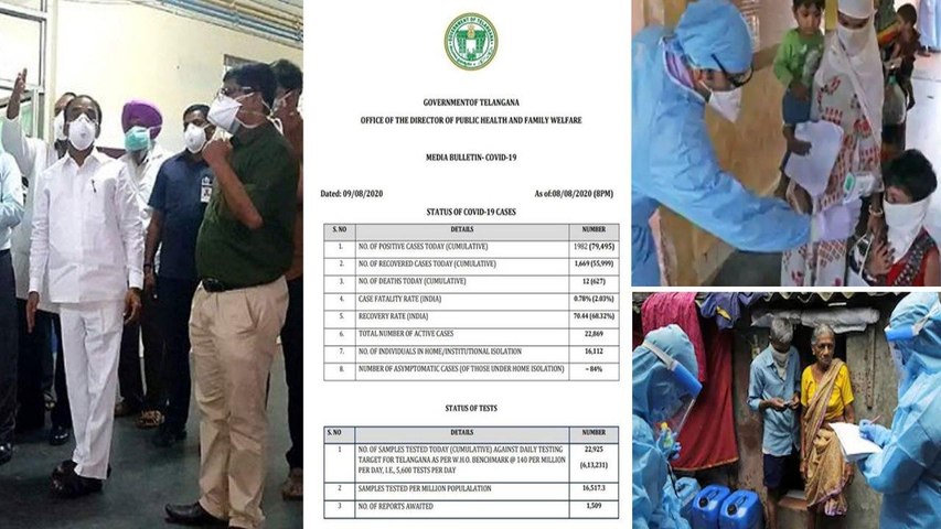 కొత్తవాటితో కలిపితే తెలంగాణలో మొత్తం కేసులు 79,495కు చేరుకున్నాయి. గడిచిన 24 గంటల్లో 12 మంది కరోనాకు బలైపోయారు. దీంతో మొత్తం మరణాల సంఖ్య 627కు పెరిగింది. అయితే, జాతీయ సగటు(68.32 శాతం) కంటే తెలంగాణలో(70.44 శాతం) మెరుగైన రికవరీ రేటు ఉందని, అంతా కలిపి ఇప్పటివరకు 56వేల మంది కొవిడ్ నుంచి కోలుకుని డిశ్చార్జ్ అయ్యారని బులిటెన్ లో పేర్కొన్నారు. యాక్టివ్ కేసుల సంఖ్య 22,869గా ఉంది. రాష్ట్ర వ్యాప్తంగా మొత్తం 6.13లక్షల కరోనా టెస్టులు చేసినట్లు వైద్య ఆరోగ్య శాఖ తెలిపింది.