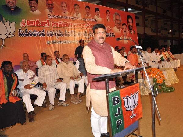 మాజీ ప్రధాని అటల్బిహారీ వాజపేయి జన్మదినాన్ని పురస్కరించుకుని సుపరిపాలనా దినోత్సవం సందర్భంగా శుక్రవారం ఏర్పాటు చేసిన విస్తృతస్థాయి కార్యకర్తల సమావేశానికి ధర్మేంద్ర ప్రధాన్ముఖ్య అతిథిగా హాజరయ్యారు. కేంద్ర మంత్రి బండారు దత్తాత్రేయ, బీజేపీ రాష్ట్ర అధ్యక్షుడు కిషన్రెడ్డి, శాసనసభాపక్ష నేత లక్ష్మణ్, ఎమ్మెల్యేలు ఎన్వీఎస్ఎ్స ప్రభాకర్, చింతల రాంచంద్రారెడ్డి, ఎమ్మెల్సీ ఎన రాంచంద్రరావు తదితరులు కార్యక్రమంలో పాల్గొన్నారు.