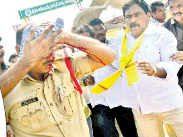 విషయం తెలుసుకున్న పాలకుర్తి ఎస్సై ఎండీ ఉస్మాన్ షరీఫ్ హుటాహుటిన మార్కెట్కు వచ్చి పరిస్థితిని చక్క దిద్దేందుకు లాఠీచార్జి చేశారు. దీంతో ఎమ్మెల్యే ఎర్రబెల్లి దయాకర్రావు తీవ్ర ఆగ్రహం వ్యక్తం చేశారు. "నా కార్యకర్తలను కొడతావా.." అంటూ ఎస్సై పైకి దూసుకెళ్లారు. అదే సమయంలో రెచ్చిపోయిన టీడీపీ కార్యకర్తలు రాళ్లతో ఎస్సైపై దాడికి దిగారు. ఈ ఘటనలో ఎస్సై తలకు తీవ్రగాయమైంది. రక్తమోడుతున్న ఎస్సైని పోలీసులు చికిత్స నిమిత్తం ప్రైవేట్ నర్సింగ్ హోంకు తరలించారు.