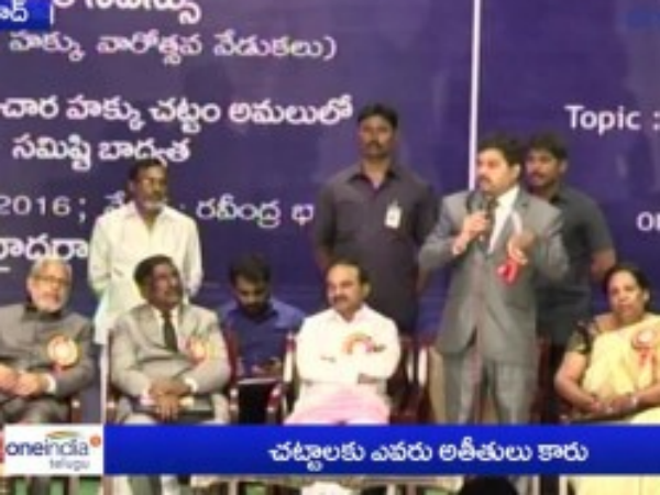 హైదరాబాద్: చట్టానికి ఎవరూ అతీతులు కారని, అందరు చట్టానికి లోబడి పని చేయాలని తెలంగాణ రాష్ట్ర ఆర్థిక శాఖ మంత్రి ఈటెల రాజేందర్ అన్నారు. గురువారం నాడు రవీంద్ర భారతిలో రాష్ట్ర సమాచార కమిషనర్ ఏర్పాటు చేసిన సమాచార చట్ట వార్షిక సదస్సులో ఈటెల ముఖ్య అతిథిగా పాల్గొన్నారు. దేశంలో అనేక రకాల చట్టాలు ఉన్నప్పటికీ సమాచార హక్కు చట్టం ప్రాధాన్యత పోషిస్తోందన్నారు.