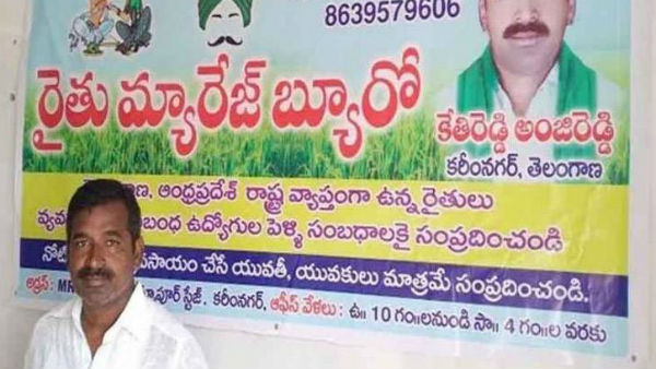 రైతులకు పెళ్లి సంబంధాలు దొరకడం చాలా కష్టంగా మారుతోంది. ఈ క్రమంలో రైతుల కోసం సంబంధాలను చూడడానికి కొత్త ఆలోచన చేసిన కరీంనగర్ జిల్లా తిమ్మాపూర్ లో ఉండే ఓ రైతు, రైతు మ్యారేజ్ బ్యూరో ను ప్రారంభించారు. కేవలం రైతులకు మాత్రమే పెళ్లి సంబంధాలు చూస్తామని ప్రకటించారు. తెలంగాణ, ఆంధ్ర ప్రదేశ్ రాష్ట్రాలలో ఉన్న రైతులు, వ్యవసాయ అనుబంధ ఉద్యోగుల పెళ్లి సంబంధాలకు తమను సంప్రదించాలని, వ్యవసాయం చేసే యువతీ, యువకులు మాత్రమే సంప్రదించండి అంటూ కేతిరెడ్డి అంజి రెడ్డి అనే రైతు, రైతు మ్యారేజ్ బ్యూరో ను ప్రారంభించారు.