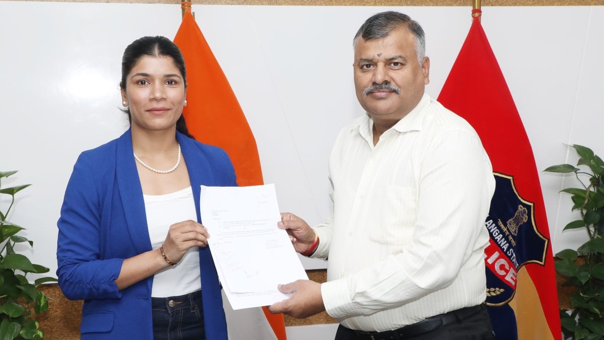 We proudly welcome two-time world boxing champion and Olympic athlete, @nikhat_zareen, as she takes on her new role as Deputy Superintendent of Police (Special Police). Hailing from Nizamabad, she submitted her joining report to me today. Her remarkable achievements inspire… pic.twitter.com/3cmOczmcQW