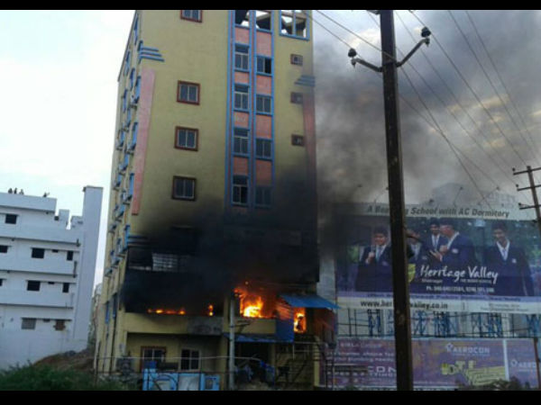 శంషాబాద్ లాడ్జీలో భారీ అగ్ని ప్రమాదం: చిక్కుకున్న 50మంది(వీడియో)