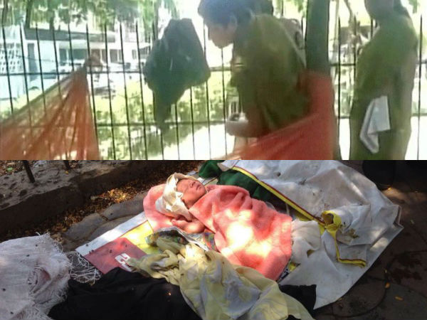 ఫుట్పాత్పై ఇలా చాటు చేసి, స్త్రీకి మహిళా పోలీసులు పురుడు పోశారు(పిక్చర్స్)