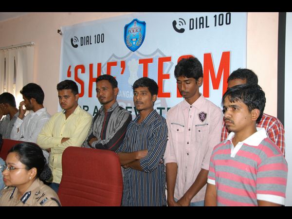 షీ టీమ్ పేరుతో మహిళల కోసం ప్రత్యేకంగా రూపొందించిన లోగోను ప్రదర్శిస్తున్న దృశ్యం.