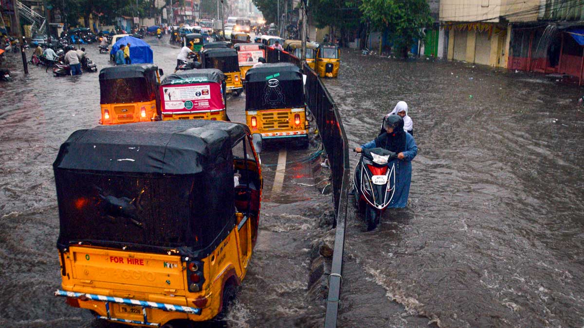 పశ్చిమ మధ్య బంగాళాఖాతంలో తీవ్ర అల్పపీడనం ఏర్పడింది. శనివారం వాయుగుండంగా మారే అవకాశం ఉంది. దీని ప్రభావంతో రాష్ట్రంలో ఓ మోస్తారు నుంచి భారీ వర్షాలు, ఒకటి రెండు చోట్ల అతి భారీ వర్షాలు పడే అవకాశం ఉన్నదని వాతావరణ శాఖ తెలిపింది. ఆదిలాబాద్, కుమ్రుం భీం ఆసిఫాబాద్, మంచిర్యాల, జగిత్యాల జిల్లాల్లో అతి భారీ వర్షాలు కురుస్తాయని వెల్లడించింది. హైదరాబాద్ నగరంలని బంజారాహిల్స్, బంజారాహిల్స్, లక్డీకపూల్, నాంపల్లి, కోఠి, అమీర్పేట, పంజాగుట్ట, ఖైరతాబాద్, మెహిదీపట్నం, మలక్పేట, దిల్సుఖ్నగర్, హయత్నగర్, వనస్థలిపురంలో వర్షం కురుస్తున్నది.