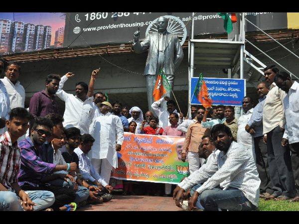 కొందరు దేశ వ్యతిరేక కార్యకలాపాలకు పాల్పడుతున్నారని, అలాంటి వారిని సహించవద్దని బిజెపి ఎస్సీ మోర్చా డాక్టర్ బిఆర్ అంబేడ్కర్కు పాలాభిషేకం చేస్తున్న దృశ్యం.
