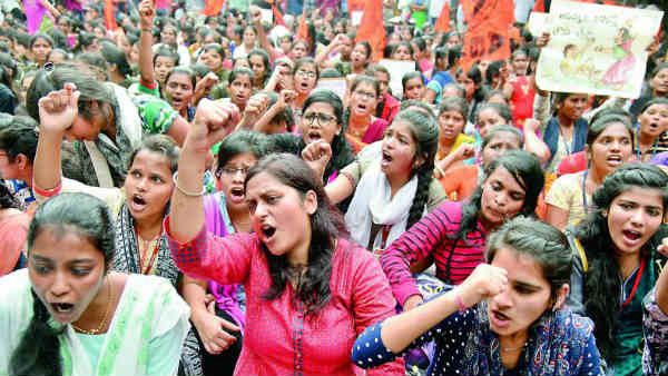 వెంటనే దోషులకు శిక్ష విధించాలని డిమాండ్ చేస్తూ మహిళా సంఘాల ఆందోళన