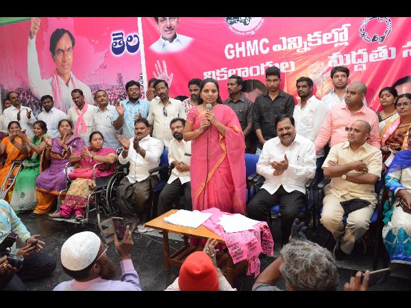 జీహెచ్ఎంసీ ఎన్నికల్లో టిఆర్ఎస్కు మద్దతునిస్తూ వికలాంగుల ఆధ్వర్యంలో శనివారం తెలంగాణభవన్లో జరిగిన సమావేశంలో ఆమె ప్రసంగించారు.