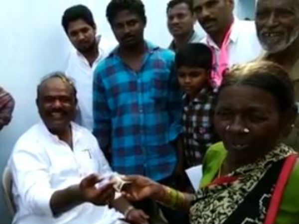 రాజమల్లవ్వ స్పందిస్తూ.. తన చేతిలోని ఒక్క రూపాయి నోటను మధుసూదనాచారి చేతిలో పెట్టింది. ‘ఇది నీ ఎన్నికల కోసం ఇస్తున్నా.. చందా అనుకో. నీ పేరు మీద దేవుడికి ముడుపు కూడా కడుతున్నా. నువ్వు మళ్లీ గెలవాలని మొక్కుతున్నా' అని ఆ పెద్దావిడ చెప్పింది.