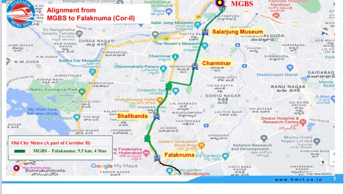 దారుల్షిఫా- ఫలక్నుమా మధ్య ఈ నాలుగో మెట్రో రైల్ కారిడార్ అందుబాటులోకి రానుంది. దారుల్షిఫా నుంచి ఆరంభం అయ్యే మెట్రో రైళ్లు.. పురానీ హవేలి- ఐత్బార్ చౌక్- అలీజా కోట్లా- మిర్ మొమిన్ దాయిరా- హరీ బౌలి- షాలిబండ- షంషేర్గంజ్- ఆలియాబాద్ మీదుగా ఫలక్నుమాకు చేరుకుంటాయి.