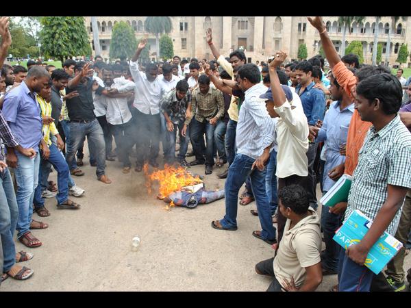ఇదిలా ఉంటే కాంట్రాక్టు ఉద్యోగుల క్రమబద్ధీకరణను వ్యతిరేకిస్తున్న ఓయూ విద్యార్థులు బుధవారం తెలంగాణ ముఖ్యమంత్రి కేసీఆర్ దిష్టిబొమ్మకు శవయాత్ర నిర్వహించారు. తొలుత భారీ ర్యాలీ నిర్వహించిన విద్యార్థులు ఆర్ట్స్ కళాశాల నుంచి ఓయూ పోలీసు స్టేషన్ వరకు కేసీఆర్ దిష్టిబొమ్మతో శవయాత్ర నిర్వహించారు. ఓయూ పీఎస్ వద్దే కేసీఆర్ దిష్టిబొమ్మను దహనం చేశారు. ఈ సందర్భంగా కాంట్రాక్టు ఉద్యోగుల క్రమబద్దీకరణపై ప్రభుత్వం వ్యవహరిస్తున్న తీరుపై విద్యార్థులు మండిపడ్డారు.