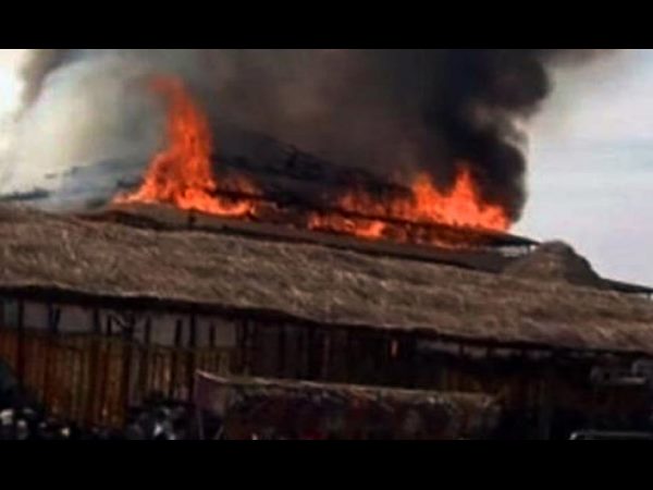 ఒక్కసారిగా లేచిన మంట పైకప్పుదాకా పాకి అంటుకుంది. పైకప్పును వరిగడ్డితో నిర్మించడంతో క్షణాల్లోనే మంటలు పాకాయి. పైనుండి మంటలంటుకున్న గడ్డి కిందపడ్డాయి. మంటలను ఎట్టకేలకు అదుపులోకి తెచ్చారు.