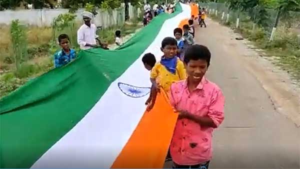 వీడియో: 75వ స్వాతంత్ర్య దినోత్సవం..75 మీటర్ల జాతీయ పతాకం: తెలంగాణలోనే